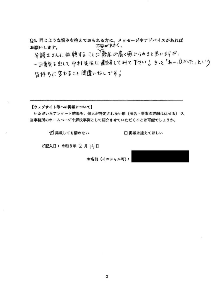 ホーム > 解決事例 > 20260214_ご依頼・ご相談を終了された方へのアンケート